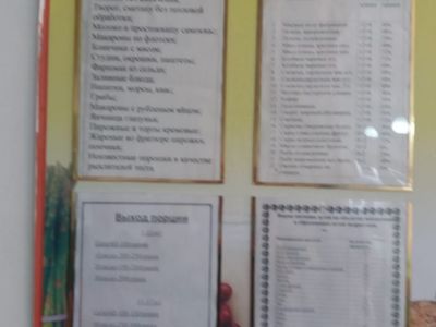 Ежегодно в столовой проводится текущий ремонт (побелка, покраска). В столовую проведена вода, установлены электронагреватель воды, раковины для мытья посуды, а также раковины для мытья рук учащимся. Санитарное состояние столовой удовлетворительное. Количество посадочных мест — 50