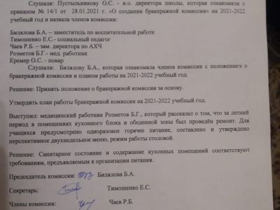 План Работы Бракеражной Работы 2024-2025 Учебный Год