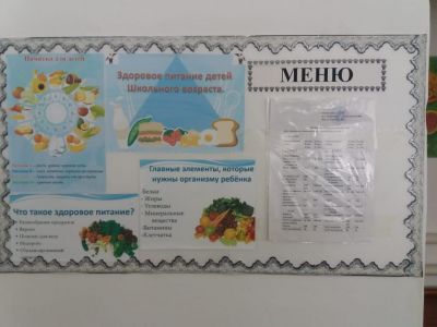 Санитарно-гигиеническое состояние пищеблока удовлетворяет требованиям санитарным требованиям. Ежедневно проводится уборка помещения, по субботам, организовано проведение санитарного дня. Хранение продуктов осуществляется в соответствии с санитарными нормами. Соблюдаются правила техники безопасности, постоянно с сотрудниками проводится инструктаж по ТБ. Питание осуществляется согласно меню, согласованным с руководителем УЗПП района Шал акына. В столовой работают повар и помощник повара, имеющие соответственную квалификацию.