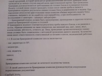 Таким образом, в настоящее время, все необходимые рычаги, позволяющие администрациям школ влиять на качество питания детей проработаны. Сегодня, следует признать, на первый план выходит уровень ответственности руководителей организаций образования (председатели бракеражных комиссий).